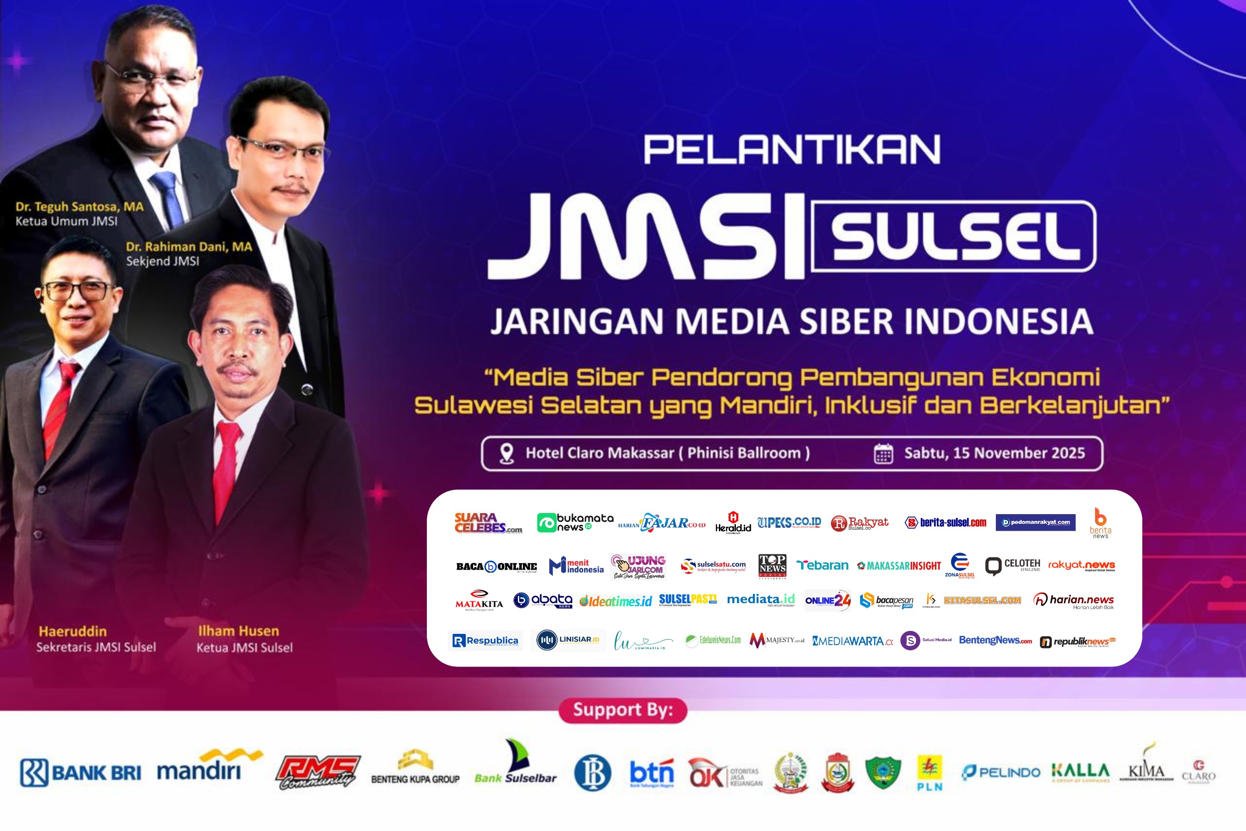 REPUBLIKNEWS.CO.ID, MAKASSAR – Persiapan pelantikan Pengurus Daerah (Pengda) Jaringan Media Siber Indonesia (JMSI) Provinsi Sulawesi Selatan periode 2025-2030 telah rampung. Prosesi pelantikan bakal dihelat di Hotel Claro, Jalan AP Pettarani, Makassar, Sabtu (15/11/2025).