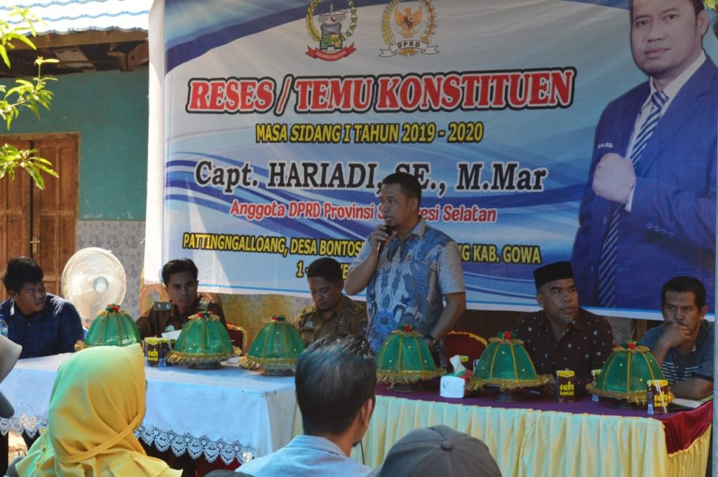 “Semua yang menjadi keinginan mendasar warga akan saya teruskan untuk dibahas di DPRD, untuk yang menyangkut kewenangan Pemerintah Kabupaten saya akan komunikasikan ke Anggota DPRD Kabupaten Takalar yang satu bendera (Nasdem) untuk diperjuangka di Pemerintah Kabupaten, sementara untuk kewenangan Pemerintah Provinsi akan saya bawa langsung ke DPRD Sulsel untuk kami bahas dan perjuangkan,” kata Kapten Hariadi.