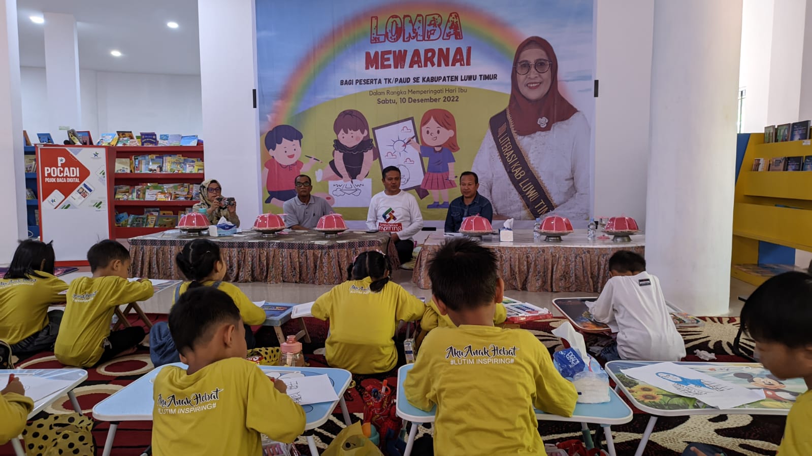 REPUBLIKNEWS.CO.ID, LUWU TIMUR- Ratusan anak didik tingkat Taman Kanak-kanak (TK) dan Sekolah Dasar (SD) se-Kabupaten Luwu Timur (Lutim) mengikuti lomba menggambar dan mewarnai di Gedung Perpustakaan Kabupaten Luwu Timur, Minggu (11/12/2022).