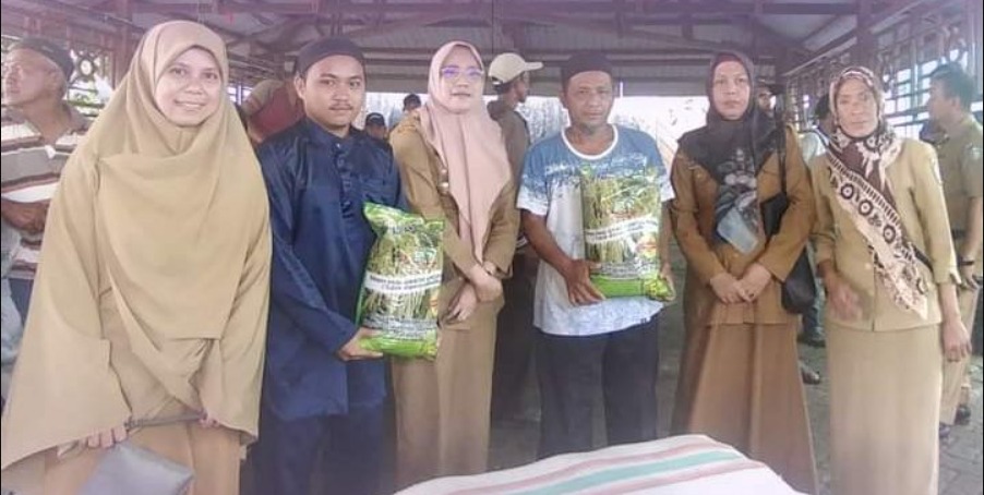 Kepala Dinas PKP Parepare, Wildana yang menyerahkan bantuan benih padi dari Program Mandiri Benih Provinsi Sulawesi Selatan itu.