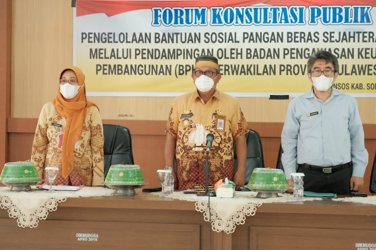 REPUBLIKNEWS.CO.ID, SOPPENG — Dinas Sosial Kabupaten Soppeng menggelar forum konsultasi publik pengelolaan Bantuan Sosial (Bansos) Pangan Beras Sejahtera (Rastra) tahun 2022 melalui pendampingan oleh Badan Pengawasan Keuangan dan Pembangunan (BPKP) Provinsi Sulawesi Selatan, di Aula Kantor Dinas Pendidikan dan Kebudayaan Kabupaten Soppeng, Kamis (10/02/2022) kemarin.