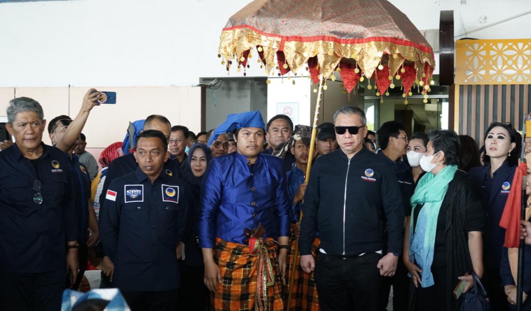 Saat tiba, rombongan elite DPP Partai NasDem disambut dengan ritual adat Bugis Makassar serta sejumlah tarian khas Sulsel.