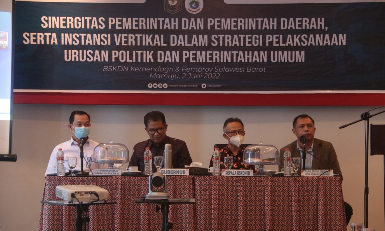 REPUBLIKNEWS.CO.ID, MAMUJU — Penjabat (Pj) Gubernur Sulbar, Akmal Malik menghadiri Diskusi Aktual Sinergitas Pemerintah dan Pemerintah Daerah serta Instansi Vertikal dalam Strategi Pelaksanaan Urusan Politik dan Pemerintahan Umum di Ruang Kenari Hotel Maleo Mamuju, Kamis (02/06/2022).