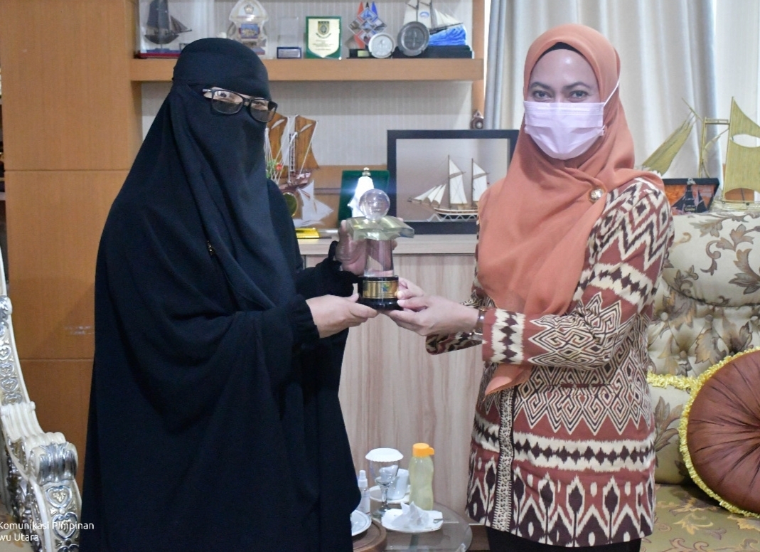 Ia sendiri didaulat menyerahkan piagam penghargaan dari Kepala Perpustaakan Nasional RI kepada Bupati Luwu Utara, Indah Putri Indriani, Kamis (20/1/2022) di ruang kerja bupati.