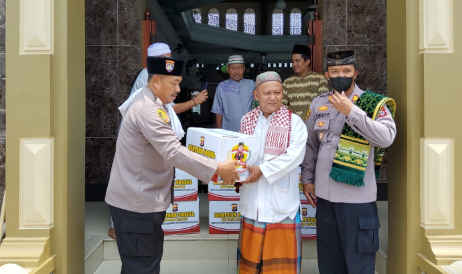 REPUBLIKNEWS.CO.ID, SERANG — Ditbinmas Polda Banten menyalurkan bantuan sembako dalam rangka Jumat berbagi kepada DKM Masjid At-Taubah Kecamatan Anyar Kabupaten Serang, Jum’at (25/03/2022).