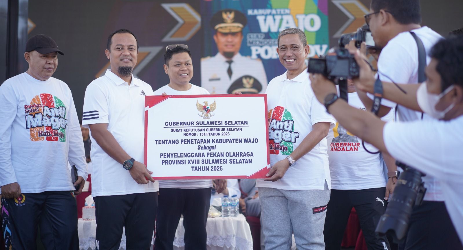 Acara tersebut dihadiri kepala daerah se Sulsel, serta kepala OPD dan Forkopimda Kabupaten Wajo. Salah satu momen penting dalam kegiatan ini adalah penyerahan Surat Keputusan (SK) dari Gubernur Sulsel kepada Kabupaten Wajo sebagai tuan rumah Pekan Olahraga Provinsi (Porprov) ke-XVIII tahun 2026 mendatang.