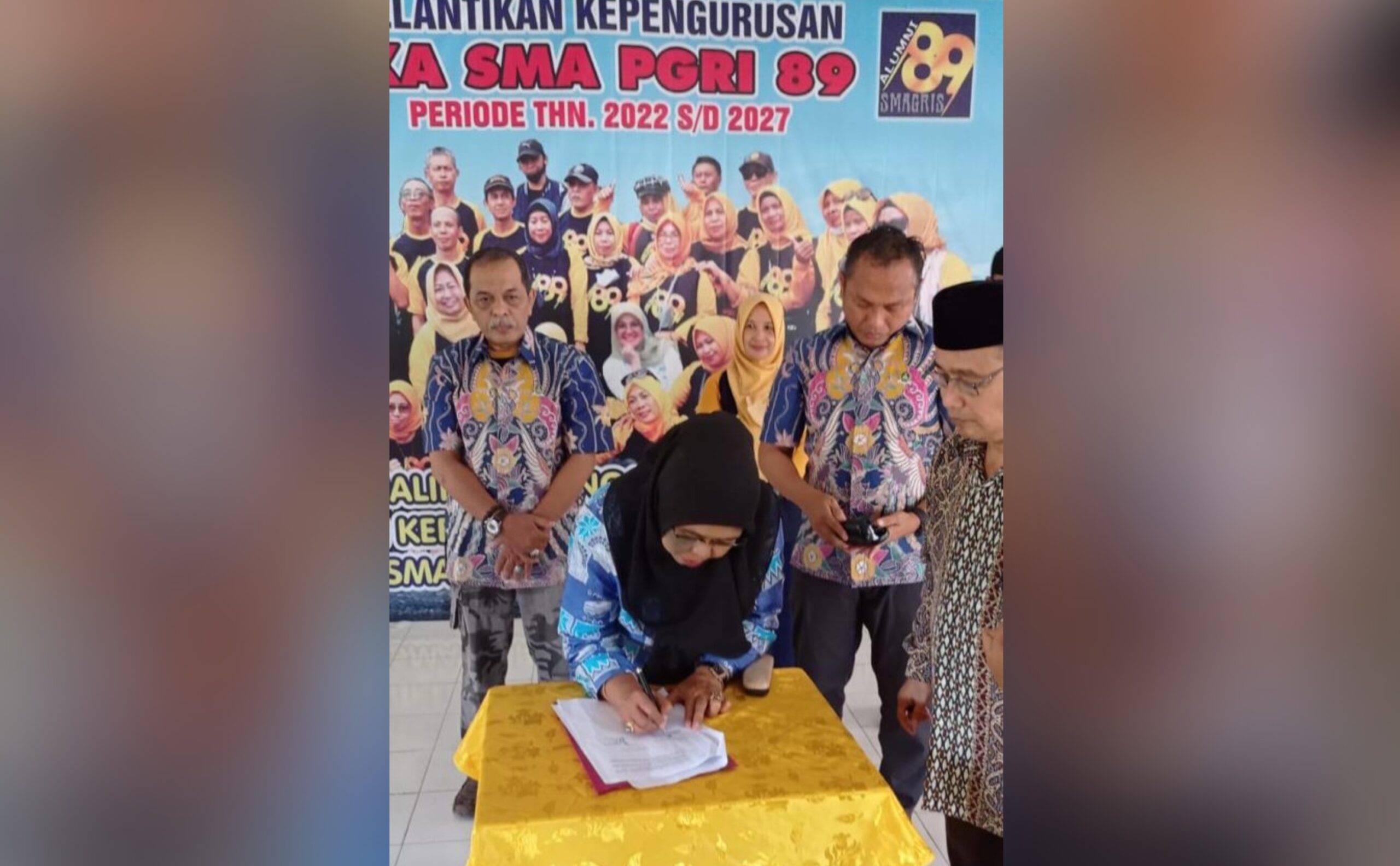 Pelantikan tersebut ditandai dengan pemasangan baju seragam IKA SMA PGRI oleh Ketua IKA SMAGRI H.Mustamin Munir, S.E kepada Ketua IKA Angkatan 89 SMAGRI Sungguminasa Djohan Machmud, disaksikan puluhan anggota pengurus yang.menyemarakkan kegiatan pelantikan tersebut dengan acara musik elekton.