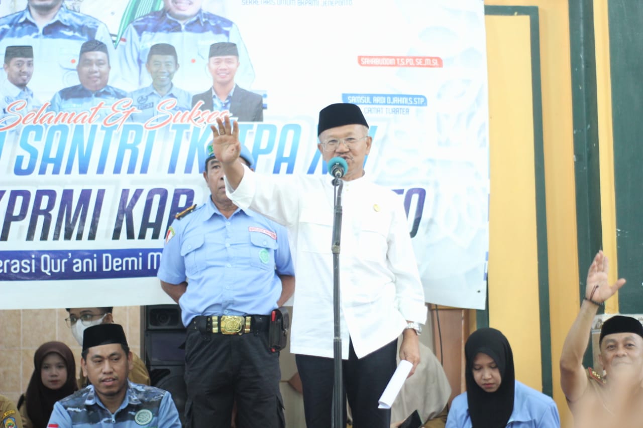 REPUBLIKNEWS.CO.ID, JENEPONTO — Bupati Jeneponto Iksan Iskandar menghadiri wisudawan santir di Kecamatan Turatea, di Mesjid Nurul Imam Paitana, Senin (13/06/2022) kemarin.