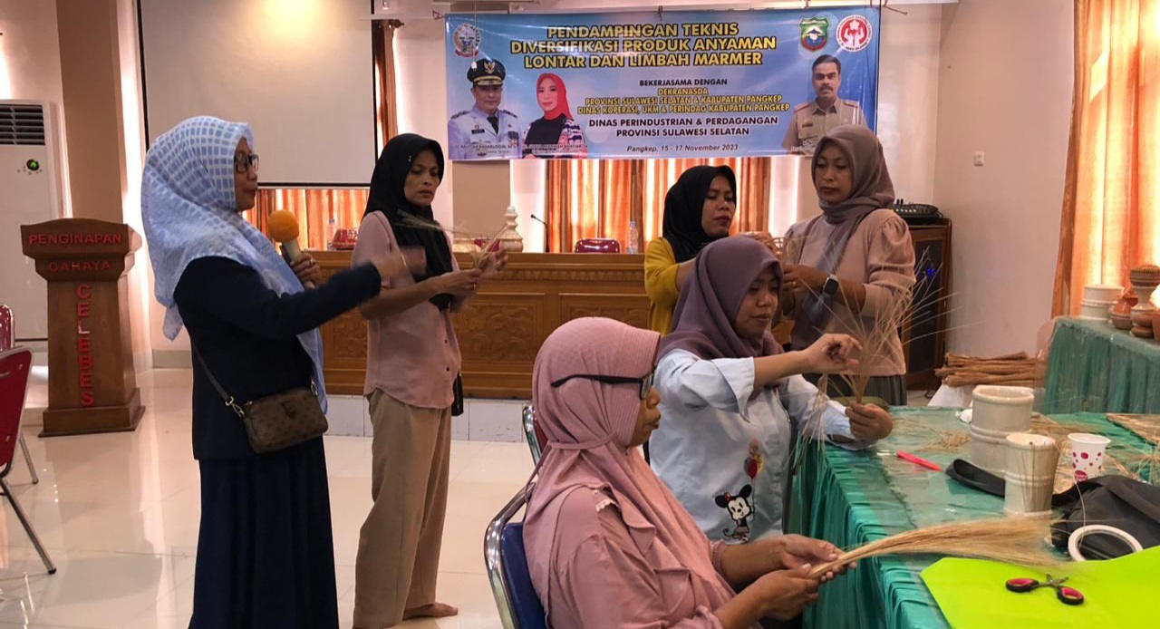 REPUBLIKNEWS.CO.ID, PANGKEP — Dewan Kerajinan Nasional Daerah (Dekranasda) Provinsi Sulawesi Selatan bersama Dinas Perindustrian dan Perdagangan Sulsel melakukan Pendampingan Teknis Diversifikasi Produk Anyaman Lontar dan Kerajinan Limbah Marmer di Kabupaten Pangkep.