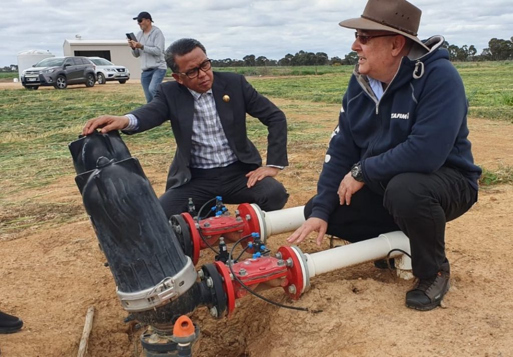 Rombongan dipimpin Prof. NA didampingi Consul Australia di Makassar Aron Cirbett, di hari kedua, Senin 7 Oktober 2019, meninjau perusahaan yang memproduksi pipa, selang, dan komponen pengairan yang mendukung sistem mekanisasi pertanian, Netafim.