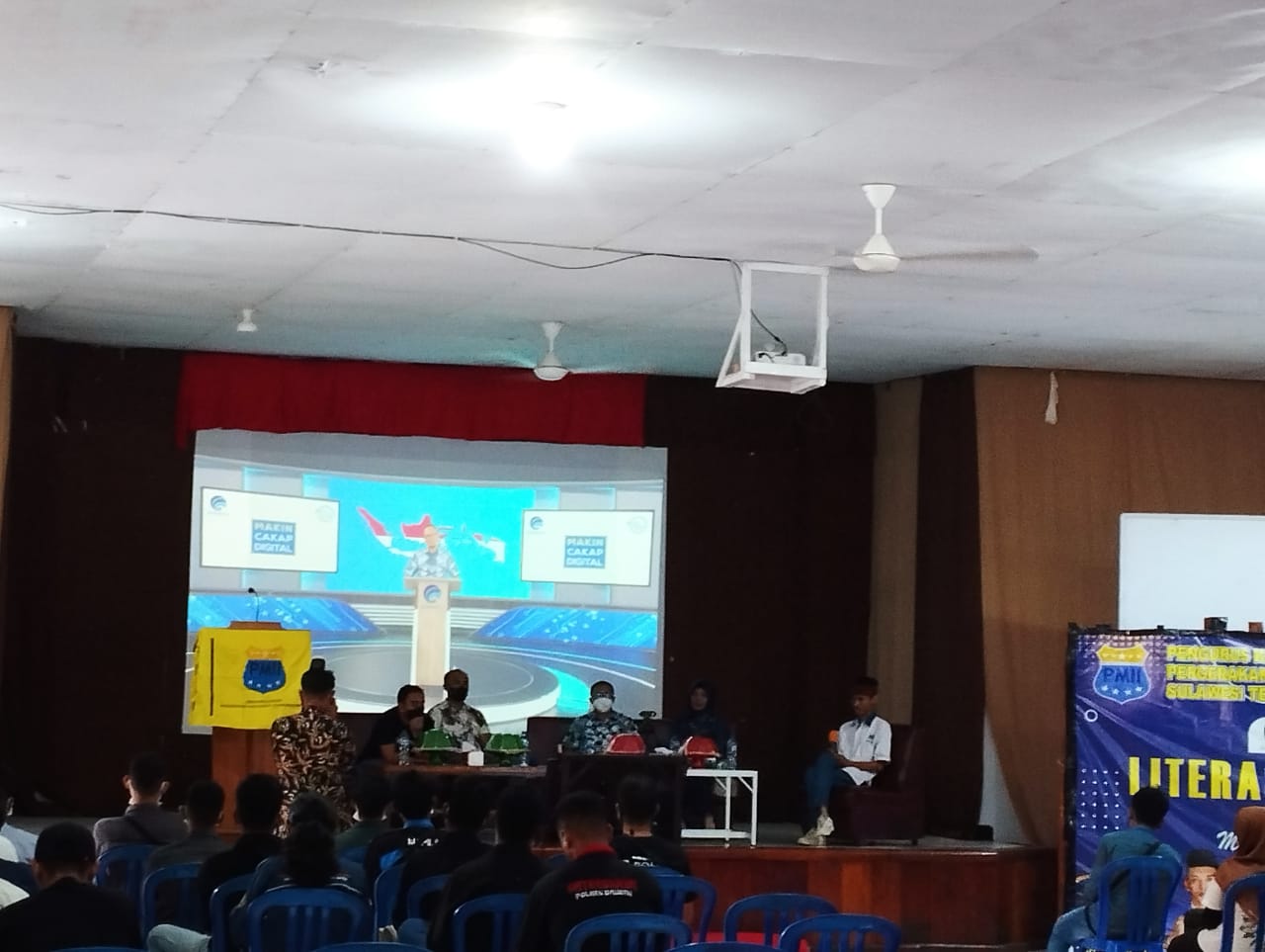Digandeng sebagai mitra oleh Kementerian Kominfo dan GNLD Siberkreasi, PKC PMII Sultra mengangkat tema “Pemuda Cakap Digital, Menuju Generasi Emas Indonesia ” dengan menghadirkan 4 Narasumber diantaranya adalah Kasat Reskrim Polres Baubau, Akademisi Wa Nurfida, Pengusaha Muda Eko Prasetya, dan Sekretaris Kominfo Baubau.