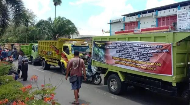 REPUBLIKNEWS.CO.ID, KOTAWARINGIN TIMUR — Akibat aktivitas tambang galian C ditutup, ratusan sopir truk dan sejumlah pengusaha tambang pasir dan tanah uruk melakukan Demo di Halaman Kantor DPRD Kabupaten Kotawaringin Timur (Kotim), Rabu (08/03/2023).