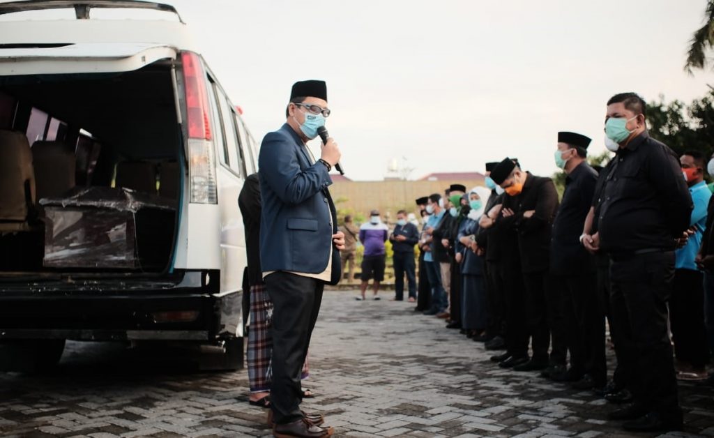 Ditengah upacara pelepasan itu juga, sejumlah anggota DPRD Kota Makassar juga melakukan salat jenazah dan memberikan penghormatan terakhir tepat di pelataran RS Faisal. (Rizal)