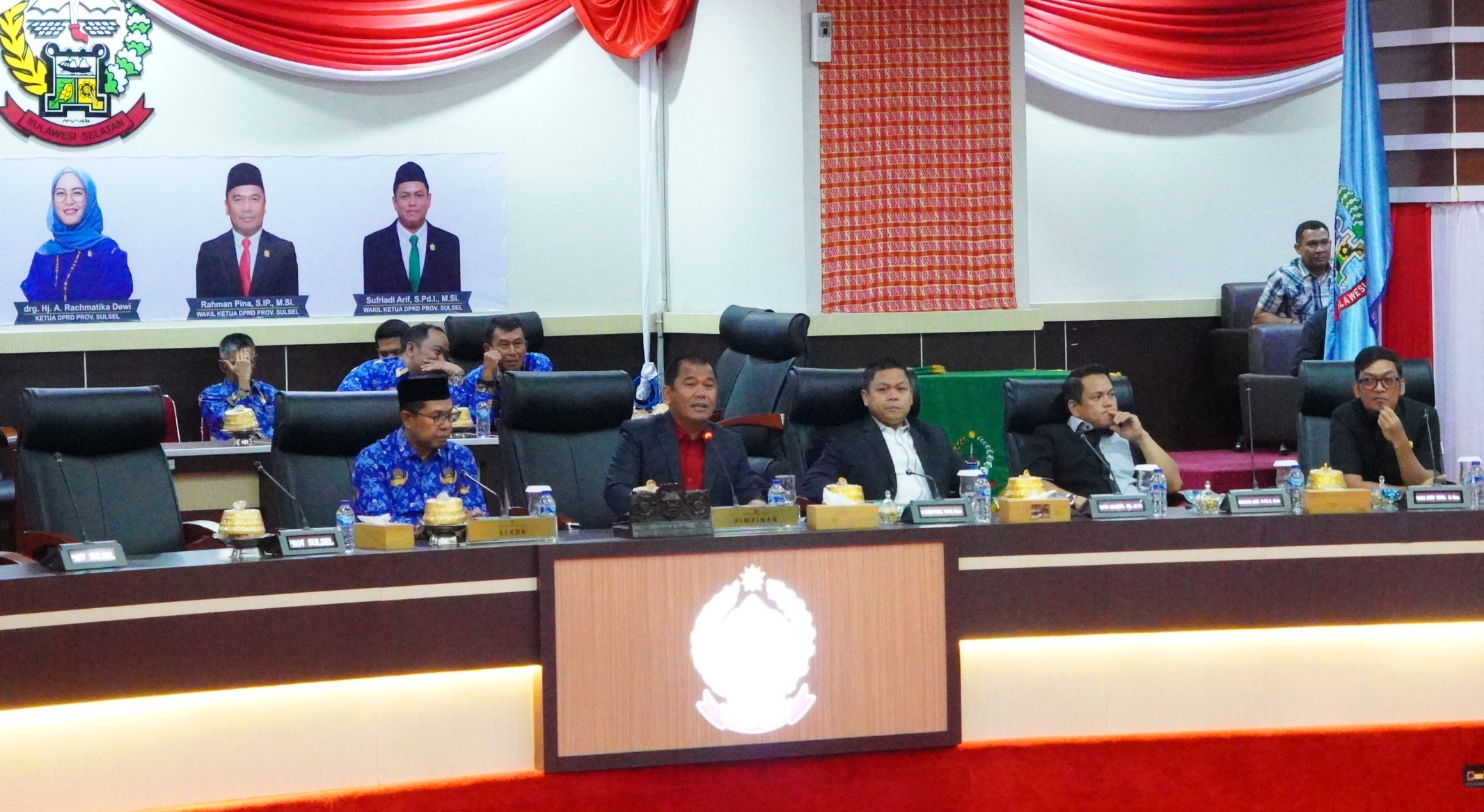 Rapat paripurna tersebut dipimpin langsung oleh Wakil Ketua DPRD Sulsel, Rahman Pina. Politisi Partai Golkar itu didampingi oleh tiga wakil ketua yakni Yasir Mahmud (Gerindra), Sufriadi Arif (PPP) dan Fauzi Andi Wawo (PKB).