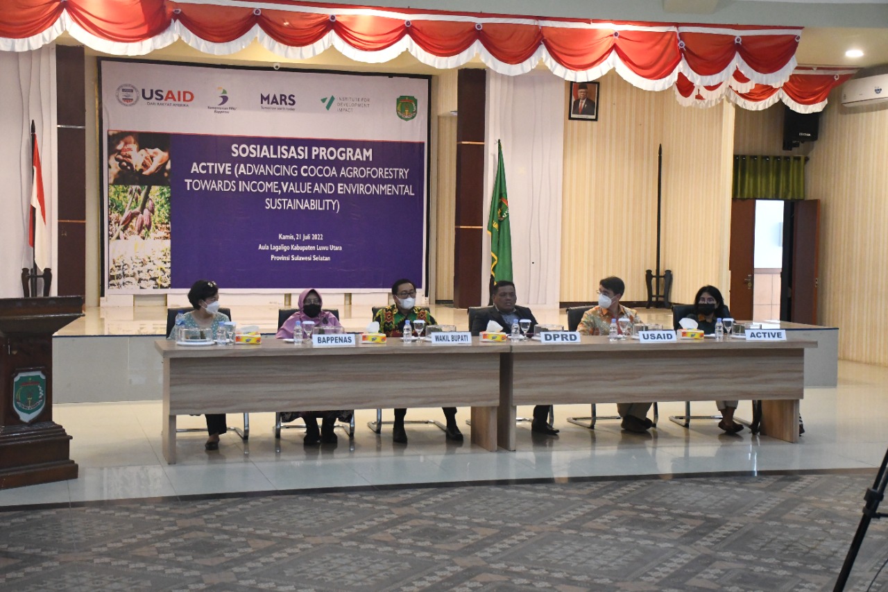 “Besar harapan saya dengan Program ACTIVE dapat mentransformasi praktik kakao saat ini dalam menjawab kebutuhan di masa depan. Ada upaya komprehensif yang dirancang untuk mengatasi hambatan yang umumnya dihadapi oleh petani kakao untuk mencapai pendapatan hidup layak,” kata Bupati Luwu Utara, Indah Putri Indriani saat menyampaikan sambutan pada kegiatan Sosialisasi Program ACTIVE yang digelar di Aula La Galigo Kantor Bupati, Kamis (21/7).