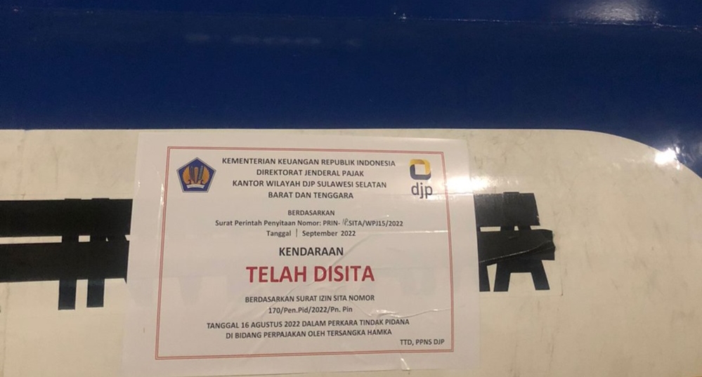 REPUBLIKNEWS.CO.ID, MAKASSAR – Sejumlah kendaraan dari tersangka pidana pajak berinisial HHS berhasil disita Tim Penyidik Pegawai Negeri Sipil (PPNS) Kantor Wilayah Direktorat Jenderal Pajak Sulawesi Selatan, Barat, dan Tenggara (Kanwil DJP Sulselbartra).