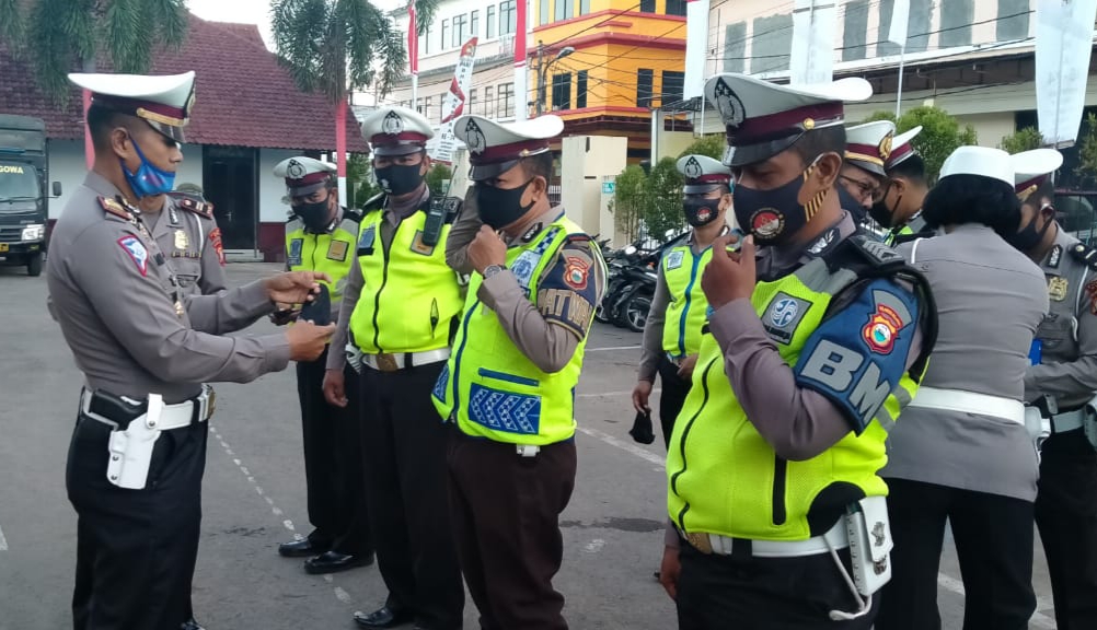 Dalam kesempatan tersebut, Kasat Lantas Polres Gowa AKP Mustari SH, didampingi Kaur Bin Ops Sat Lantas Polres Gowa Iptu Ida Ayu Made, membagikan masker kepada personil Sat Lantas Polres Gowa sebagai tanda kesiapan Anggota Sat Lantas Polres Gowa sebelum melaksanakan tugas lapangan.