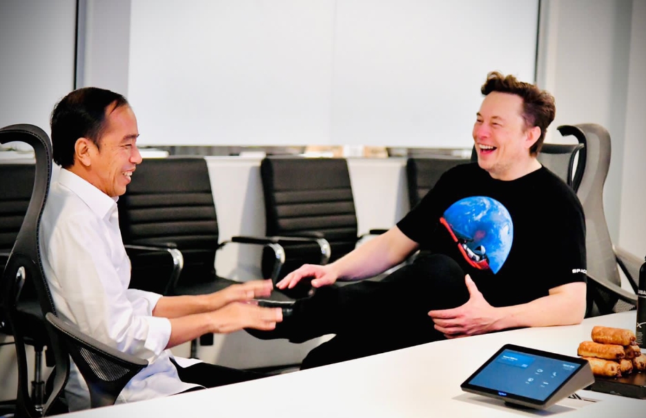 Dalam kunjungannya ke Space X di Boca Chica, Amerika Serikat, 14 Mei 2022. Presiden Jokowi mengundang Elon Musk untuk datang ke Indonesia.