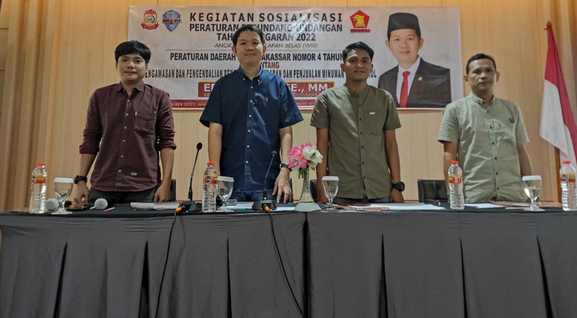 REPUBLIKNEWS.CO.ID, MAKASSAR – Anggota DPRD Kota Makassar, Eric Horas menggelar kegiatan sosialisasi Peraturan Daerah (Perda) Kota Makassar Nomor 4 Tahun 2014 tentang Pengawasan dan Pengendalian, Pengadaan, Peredaran dan Penjualan Minuman Berakohol. Kegiatan sosper tersebut digelar di Whiz Prime Hotel Sudirman Makassar, Jalan Jenderal Sudirman, Kota Makassar, Rabu (23/11/2022).
