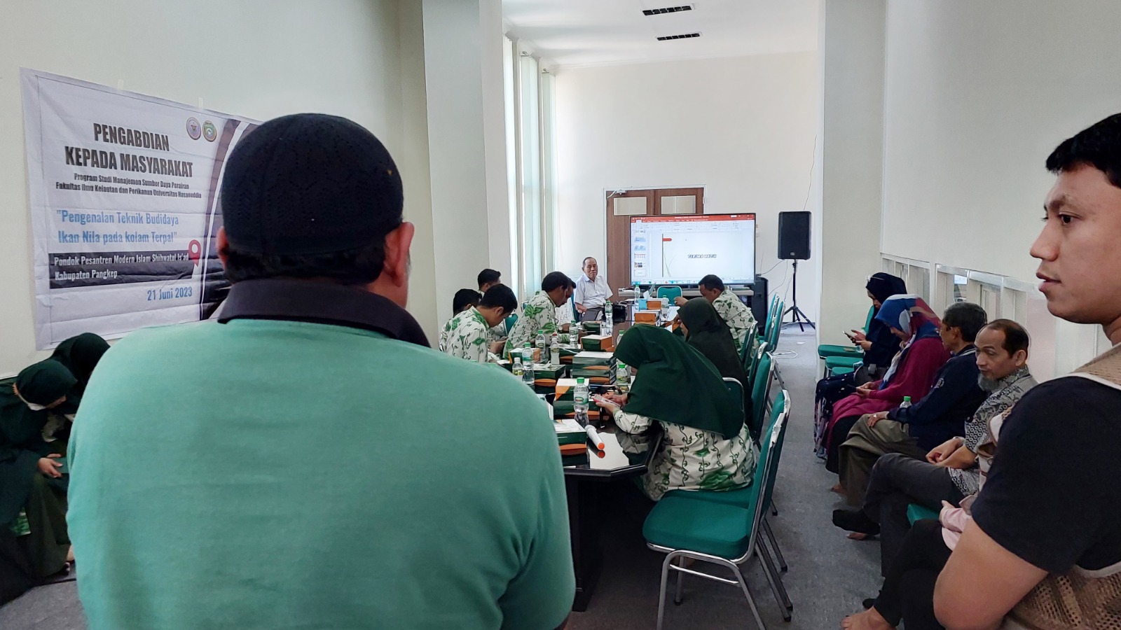 Dalam sambutannya, Ketua Tim Nita Rukminasari,S.Pi, MP, PhD, menyampaikan harapannya agar dengan adanya kegiatan pasantren ini, masyarakat dapat memenuhi kebutuhan protein secara mandiri melalui budidaya ikan nila.