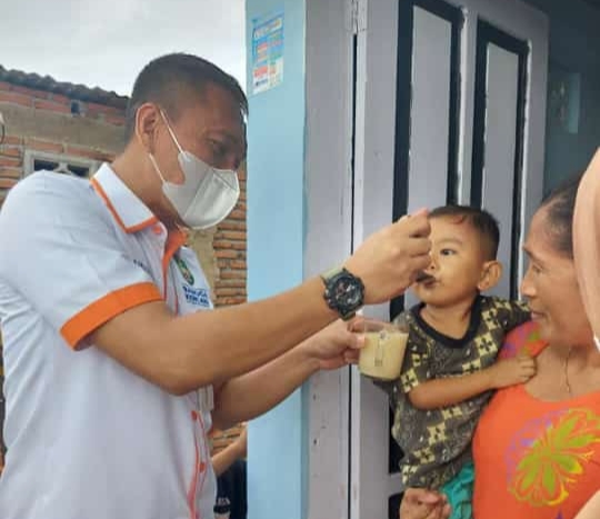 Pada kunjungan Plt.Kadis DPPKB, Farid Kasim Judas, S.H. M.Si.MH.,, tampak memberikan minum kepada anak yang kurang gizi, berupa susu balita.