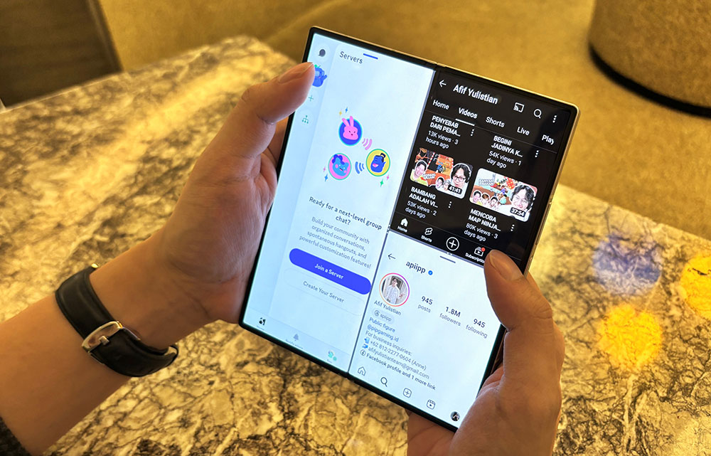 “Salah satu fitur yang membuat saya terus menggunakan seri Galaxy Fold adalah kemampuan Multi Window-nya. Dengan fitur ini, aku bisa mengerjakan beberapa task sekaligus dalam waktu bersamaan. Misalnya, aku bisa berbincang dengan sesama gamers di aplikasi Discord sambil mencari referensi konten di TikTok dan YouTube sekaligus. Ini mengurangi waktu dan upaya yang biasanya dibutuhkan untuk membuka dan menutup aplikasi, terutama untuk konten-konten berdurasi pendek yang lebih nyaman jika langsung diedit di smartphone,” tambahnya.