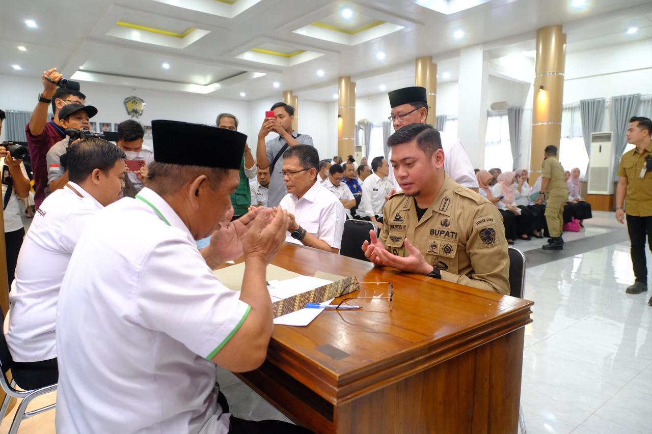 “Seluruh ASN di SKPD dan Kecamatan telah bersiap untuk menyerahkan zakat fitrahnya, dan kami laporkan pada hari ini telah disiapkan oleh Baznas 1000 paket dan diserahkan 150 paket secara simbolis kepada masyarakat,” terangnya.