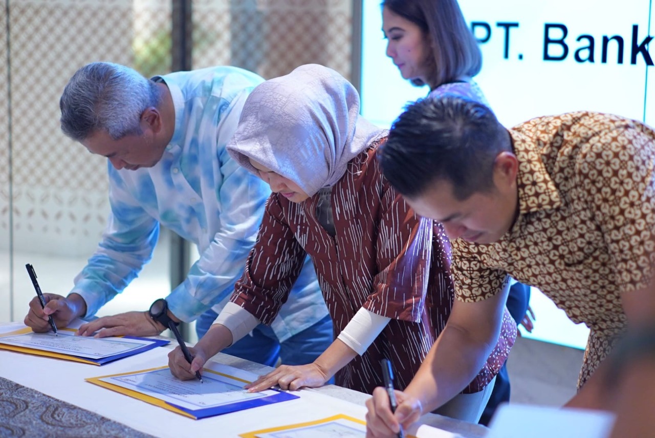 Seremonial penandatanganan kerjasama dilakukan oleh Senior Vice President Bank Mandiri Dessy Wahyuni, Vice President Bank Mandiri Noviandika Sukanto, CEO FKS Land Farry Ongko Widjaja.
