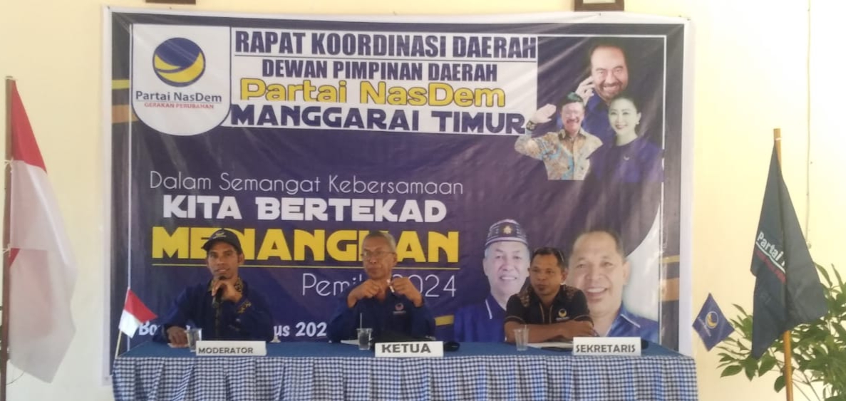 REPUBLIKNEWS.CO.ID, MANGGARAI TIMUR – Rapat Koordinasi Daerah (Rakorda) DPD Partai NasDem Kabupaten Manggarai Timur, Nusa Tenggara Timur (NTT) bertujuan untuk memantapkan struktur badan pengurus dari tingkat DPD, DPC dan DPRT.