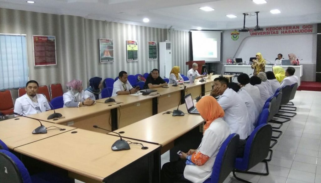 Sosialisasi yang digelar di Ruang Senat FKG Unhas ini dihadiri oleh perwakilan dari Kemenkes (dr. Fitria, MKM dan drg. Ira), Dekan, Wakil Dekan Bidang Perencanaan, Keuangan dan Sumber Daya Dr. drg. Nurlindah Hamrun, M.Kes, Wakil Dekan Bidang Kemahasiswaa, Alumni dan Kemitraan Dr. drg. Eddy Hariyanto Habar, Sp.Ort(K), KPS Prostodonsi drg. Irfan Dammar, Sp.pros(K) serta para residen dari PPDGS Konservasi Gigi, PPDGS Prostodonsi, PPDGS Periodontologi dan PPDGS Bedah Mulut dan Maksilofasial.