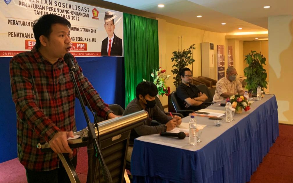 Kali ini, Eric Horas menyosialisasikan Peraturan Daerah (Perda) Kota Makassar Nomor 3 Tahun 2014 tentang Penataan dan Pengelolaan Ruang Terbuka Hijau (RTH).