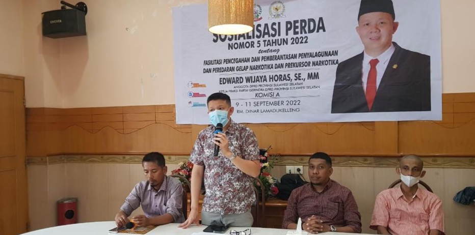 REPUBLIKNEWS.CO.ID, MAKASSAR – Anggota DPRD Sulawesi Selatan, Edward Wijaya Horas menggelar kegiatan sosialisasi Peraturan Daerah (Perda) Nomor 5 Tahun 2022 tentang Fasilitasi Pencegahan dan Pemberantasan Penyalahgunaan dan Peredaran Gelap Narkotika dan Prekursor Narkotika.
