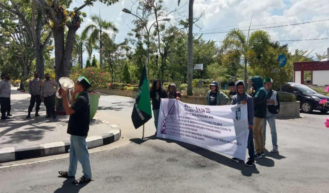 Desakan ini disampaikan Himpunan Mahasiswa Islam (HMI) Cabang Polman saat menggelar aksi unjuk rasa di depan Kantor Bupati Polman, Selasa (05/04/2022).