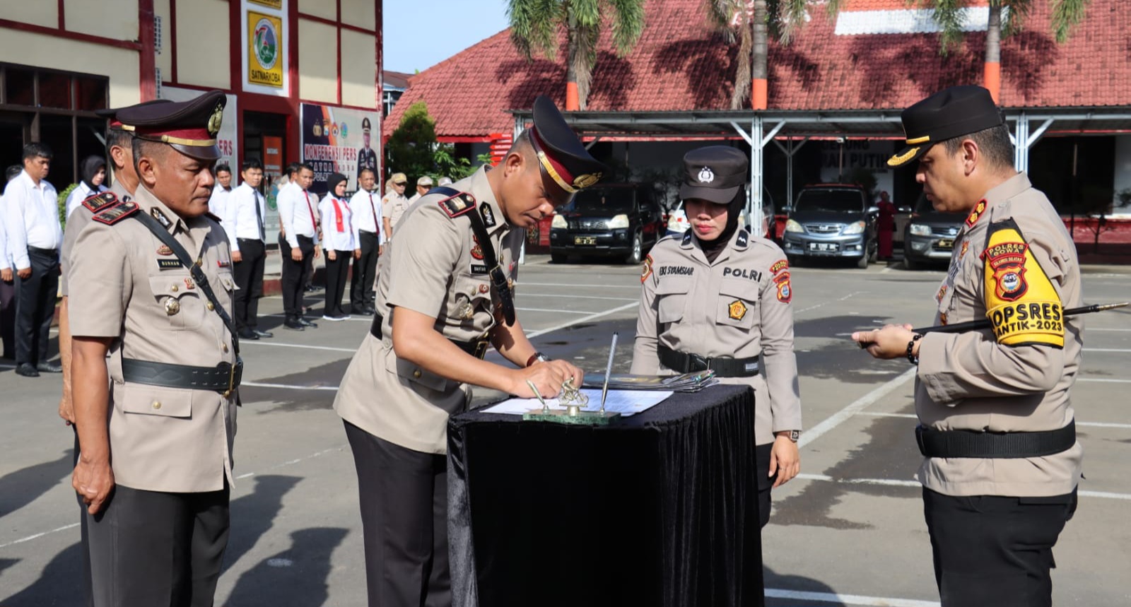 Upacara Sertijab dipimpin oleh Kapolres Gowa AKBP Reonald TS Simanjuntak, dengan ditandai dengan pembacaan sumpah janji, penandatanganan berita acara serah terima jabatan dan pakta Integritas.