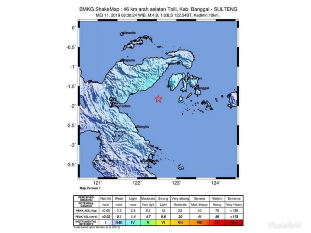 REPUBLIKNEWS.CO.ID, BANGGAI — Gempa Bumi Tektonik dengan magnitudo 4,9 Skala Richter (SR) mengguncang Toili, Kabupaten Banggai, Provinsi Sulawesi Tengah, sekitar pukul 09.30 WITA, Sabtu (11/05/2019).