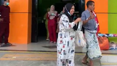 Terlihat, puluhan Pasien yang sedang menjalani perawatan di RSUD Sinjai berhamburan keluar Rumah Sakit. (Asrianto)