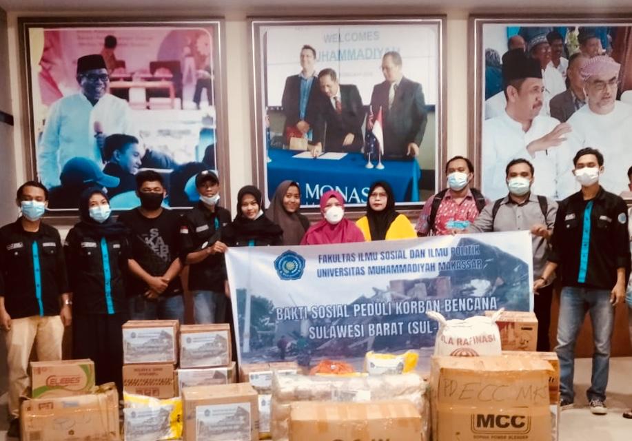 Fakultas Ilmu Sosial dan Ilmu Politik (FISIP) Unismuh telah menurunkan tim untuk membagi paket kebutuhan pokok. Terutama kebutuhan pokok bagi masyarakat di tenda-tenda pengungsian. Sasarannya adalah para bayi, balita, ibu hamil dan masyarakat yang terkena dampak langsung bencana gempa.