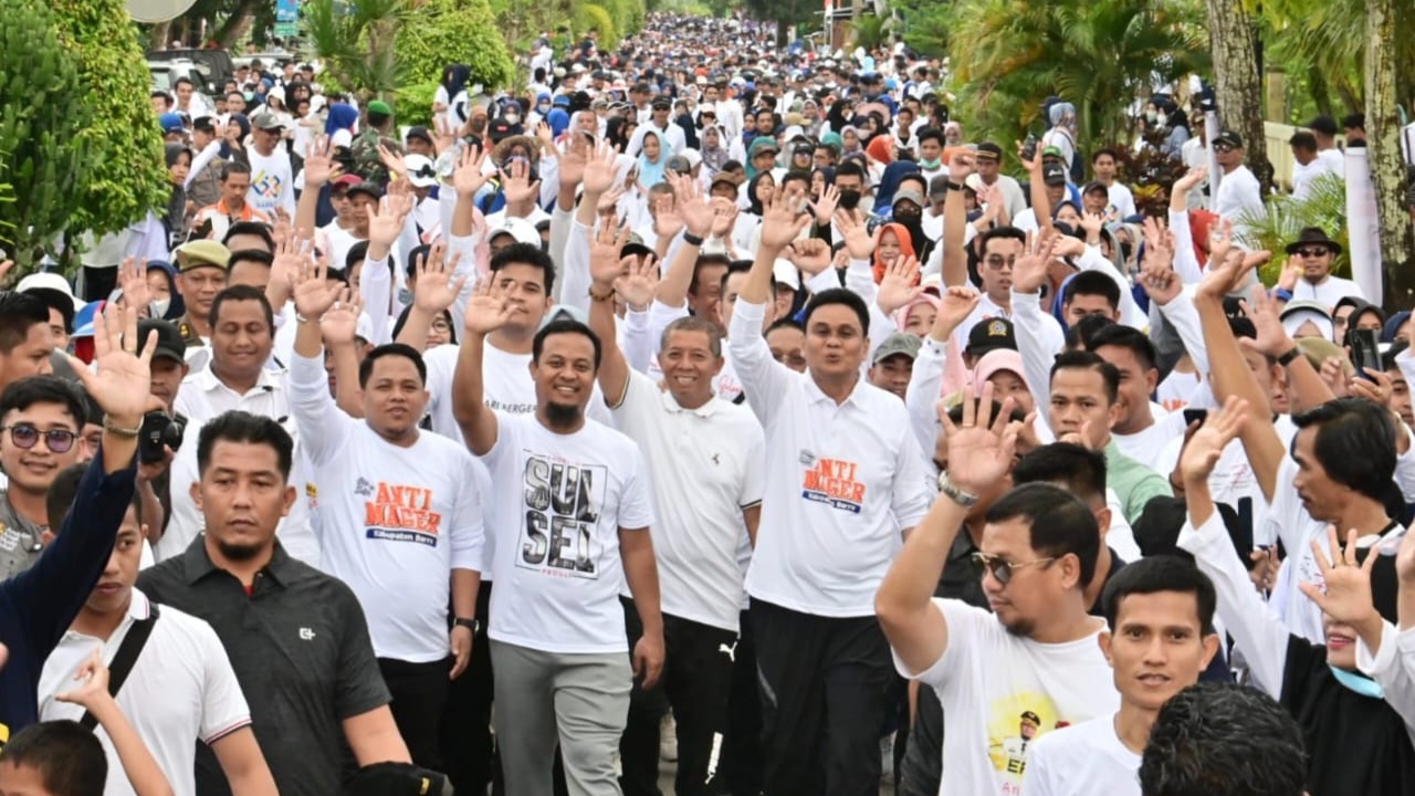 REPUBLIKNEWS.CO.ID, BARRU — Sekitar 60 ribu masyarakat Kabupaten Barru mengikuti Jalan Sehat Sulsel Anti Mager, pada Minggu (26/02/2023).