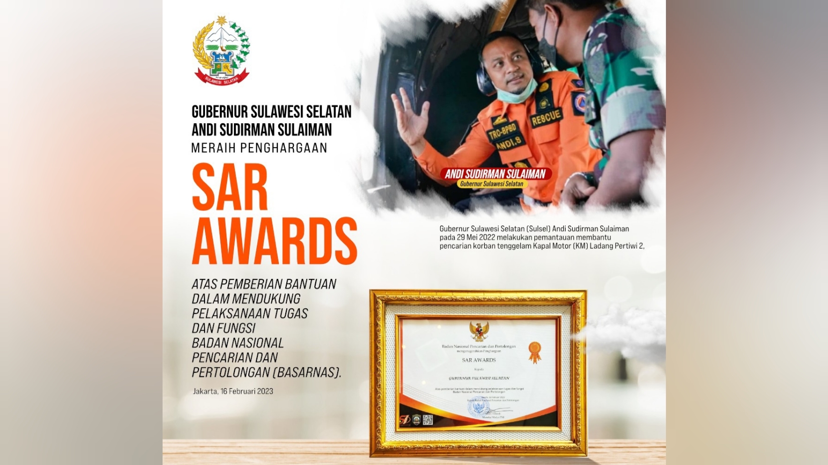 “Alhamdulillah menerima Penghargaan SAR AWARDS dari Badan Nasional Pencarian dan Pertolongan (BNPP/Basarnas) di Rapat Kerja dan Forum Koordinasi Potensi Pencarian dan Pertolongan (FKP3) 2023,” kata Gubernur Andi Sudirman.