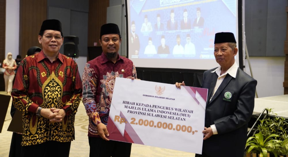 REPUBLIKNEWS.CO.ID, MAKASSAR — Gubernur Sulawesi Selatan Andi Sudirman Sulaiman, menyerahkan bantuan hibah kepada Pengurus Wilayah MUI Provinsi Sulsel sebesar Rp 2 miliar dan hibah kepada Pengurus Badan Amil Zakat Nasional (BAZNAS) Provinsi Sulsel sebesar Rp 1 miliar.