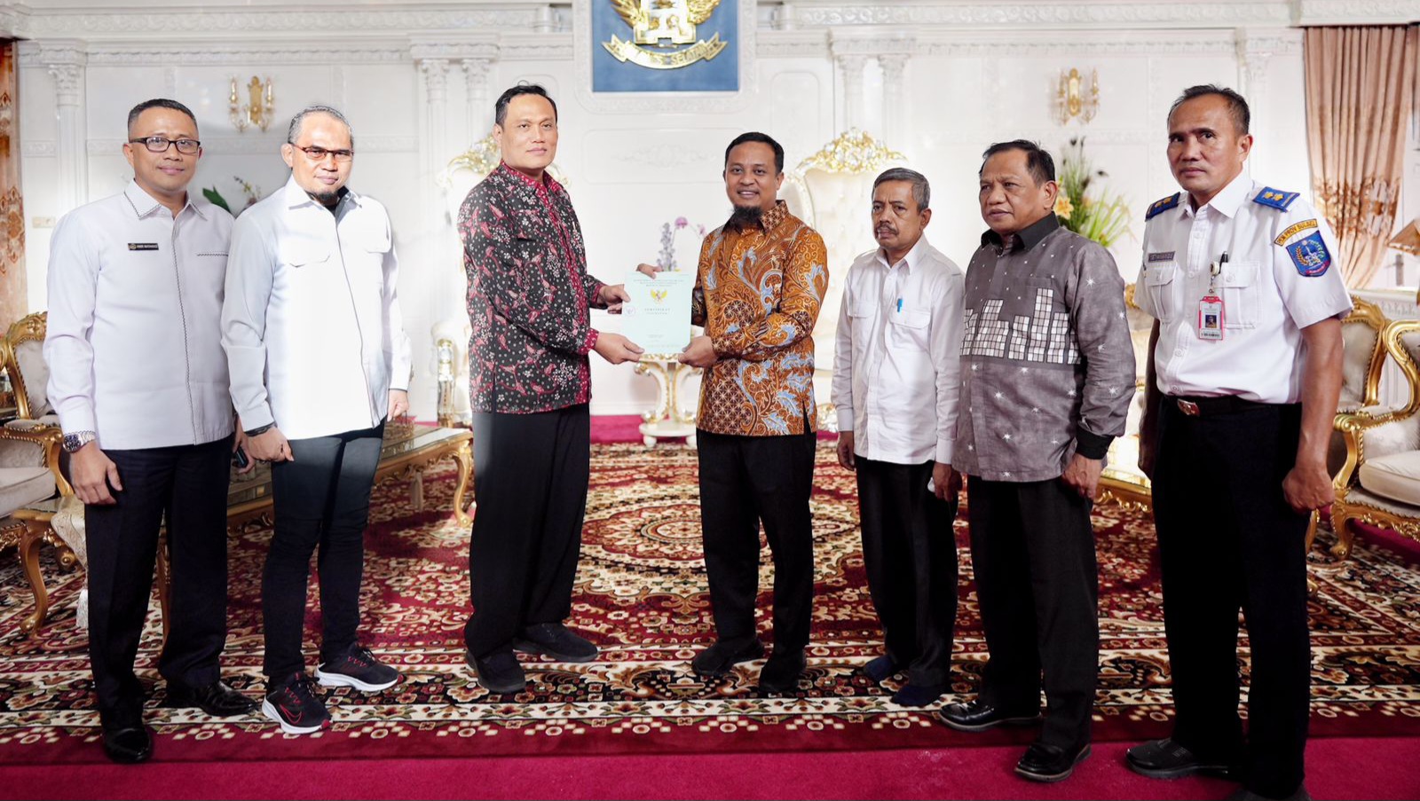 SHP diterima Gubernur Sulsel Andi Sudirman Sulaiman dan diserahkan Kepala Kantor ATR/BPN Luwu Timur, Muhallis Menca di Rujab Gubernur Sulsel, Rabu (08/02/2023)