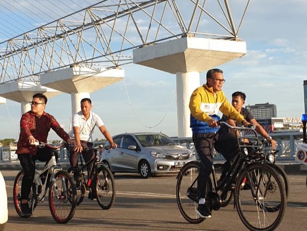 Tanpa jadwal protokoler, setelah shalat Ashar, Gubernur NA tiba-tiba keluar Rujab dengan setelan training dan menuntun sepeda.