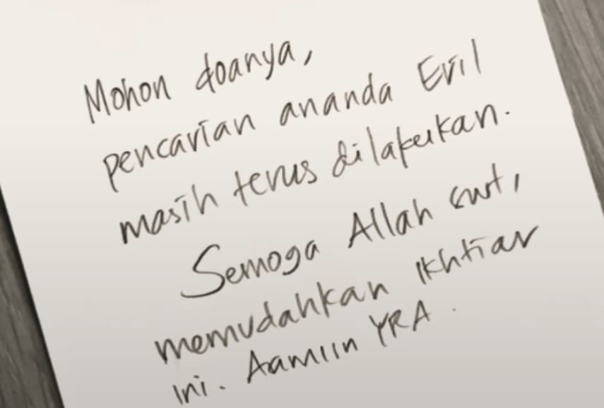“Mohon doa nya, pencarian ananda Eril masih terus dilakukan. Semoga Allah SWT memudahkan ikhtiar ini. Aamiin YRA. Dan Terima kasih dari kami sekeluarga kepada semua yang ikhlas mendoakan dan melaksanakan doa bersama. Semoga Allah membalas ketulusan hati anda semua. Jazakallah”, tulis Ridwan Kamil di akun Instagramnya.