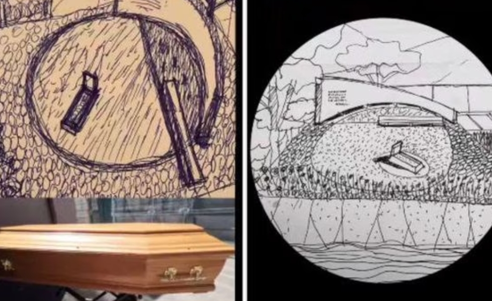 Dalam postingan itu, ditampilkan sebuah peti jenazah, desain pemakaman, hingga desain sebuah Masjid.