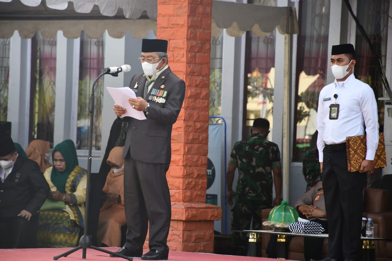 REPUBLIKNEWS.CO.ID, MAMUJU — Gubernur Sulawesi Barat Ali Baal Masdar, bertindak selaku Inspektur Upacara (Irup) pada Upacara Peringatan Hari Amal Bakti Kementerian Agama Republik Indonesia (Kemenag RI) Ke-76 Tingkat Prov. Sulbar, yang berlangsung di Halaman Kanwil Kemenag Sulbar, Senin (03/01/2022).