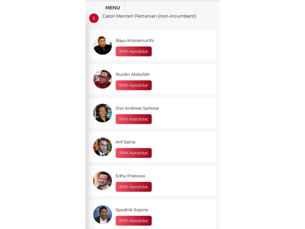Nama mantan Sekjen Apkasi Indonesia ini masuk dalam urutan kedua kandidat Menteri Pertanian setelah Bayu Krisnamukti dari enam deretan nama-nama kandidat.