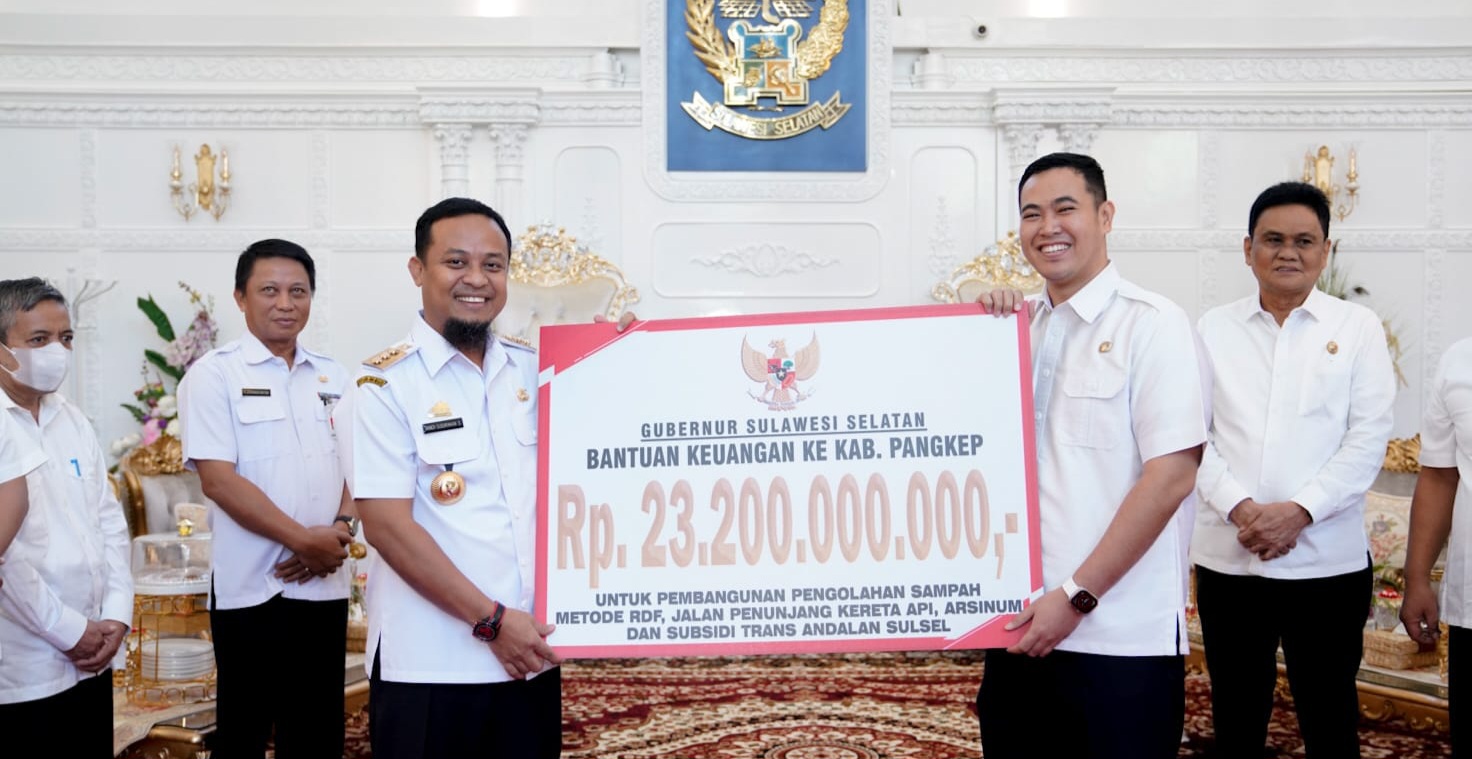 REPUBLIKNEWS.CO.ID, MAKASSAR — Gubernur Sulawesi Selatan Andi Sudirman Sulaiman, menyerahkan bantuan keuangan senilai Rp23,2 miliar untuk Pemkab Pangkep. Secara simbolis diterima langsung Bupati Pangkep Muhammad Yusran Lalogau, di Rujab Gubernur Sulsel, Rabu (01/02/2023).