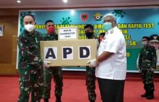 Pada Rabu (08/04/2020), Mayjen TNI Andi Sumangerukka, menyerahkan sejumlah bantuan berupa Alat Pelindung Diri (APD) sebanyak 2.000 unit dan Rapid-test sebanyak 600 unit kepada Gubernur Sultra Ali Mazi.