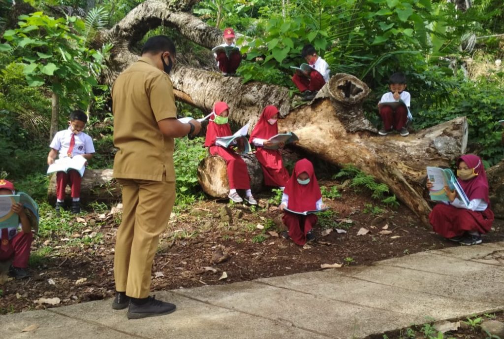 “Selain tatap muka dengan Murid di Alam terbuka, kita lakukan juga sistim Belajar Dor to Dor, apalagi jaringan Internet disini sangat buruk,” tutur Sucita Iradah Putry.