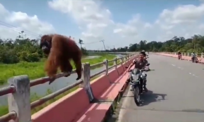 REPUBLIKNEWS.CO.ID, KOTAWARINGIN BARAT – Anggota Koramil 1014-03 Kotawaringin Lama, menggiring seekor individu orangutan dewasa yang keluar dari habitatnya di sekitar Jembatan Panjang, Kelurahan Kotawaringin Hilir, Kecamatan Kotawaringin Lama, Kabupaten Kotawaringin Barat, Kalimantan Tengah, Jumat (01/07/2022) kemarin, sekitar pukul 10.30 WIB.